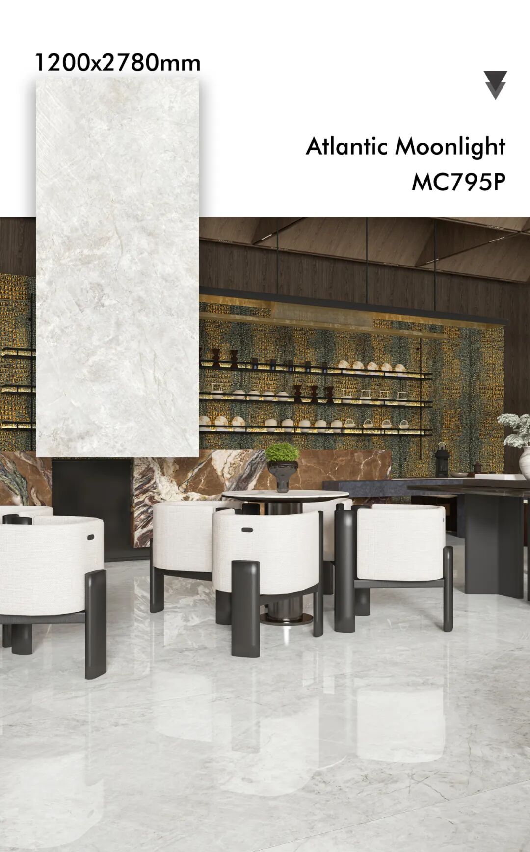 It transforms sintered stone from a cold material into a spatial language that tells stories, conveys moods, and reveals character.